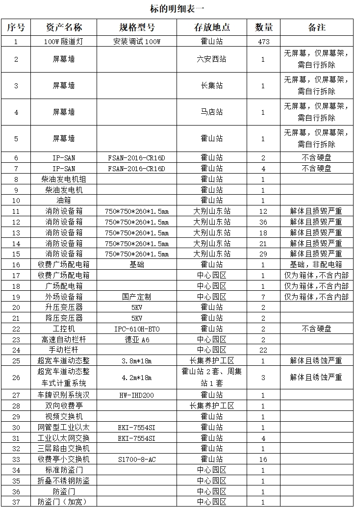 標的詳情見中拍平臺所附標的明細表,所附標的明細表上的數(shù)據(jù)及規(guī)格型號等信息僅供參考,以實物現(xiàn)狀為準,成交后以現(xiàn)場實物為準移交。