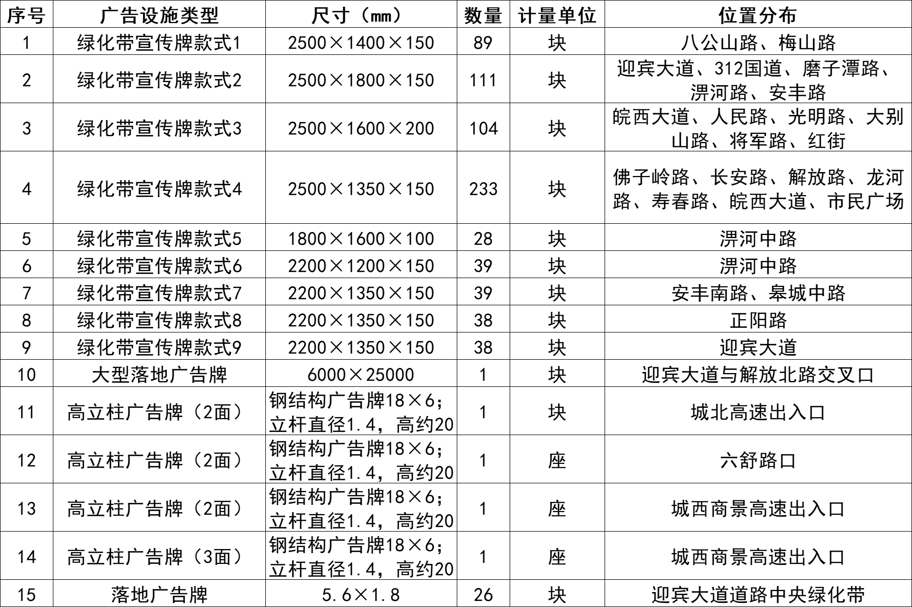 六安城區(qū)750塊戶外廣告牌 5年期經(jīng)營權(quán)拍賣交易公告